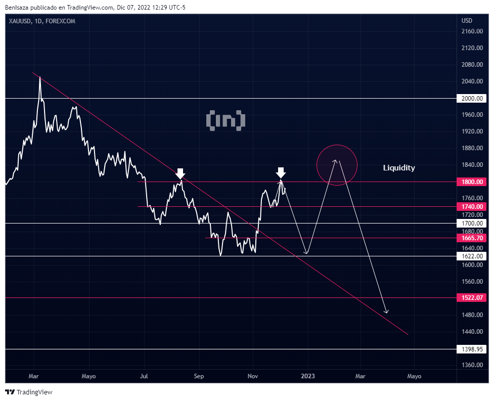 La incertidumbre en el institucional frente a una posible recesión en el 2023-2024, y mientras se mantenga el oro por encima del nivel psicológico de los 1,730 dólares, se podría proyectar una recuperación en la cotización, proponiendo como objetivo zonas superiores a los 1,900 dólares.