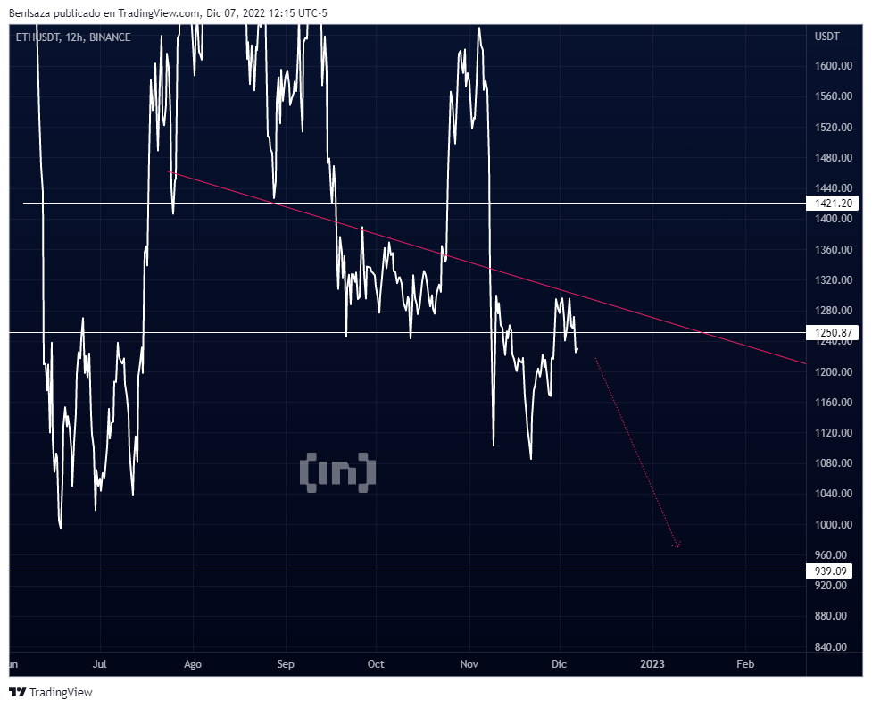 Mientras la cotización de ETH se mantenga por debajo de la barrera de los 1,250 dólares, supone una continuidad con primer objetivo los 940 dólares.