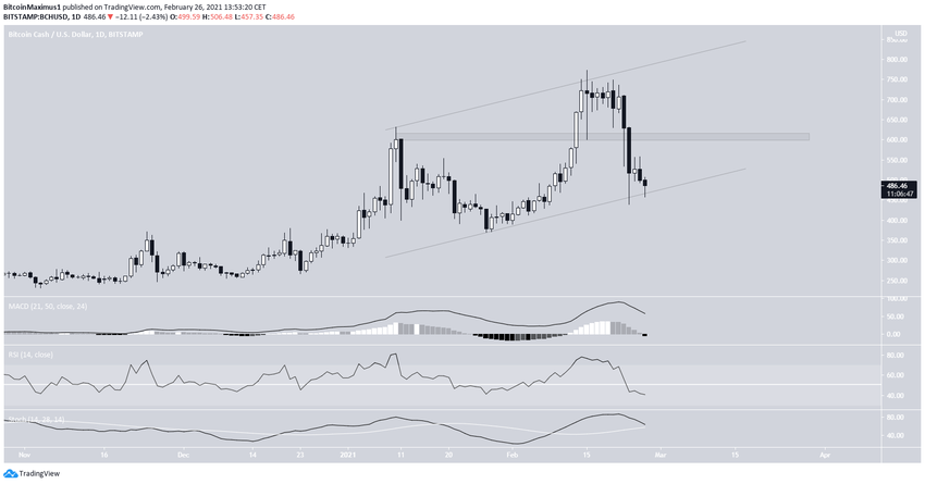 BCH ha ido bajando desde que alcanzó un máximo de 773 dólares el 15 de febrero. La caída lo ha llevado a un mínimo de 433 dólares el 23 de febrero.