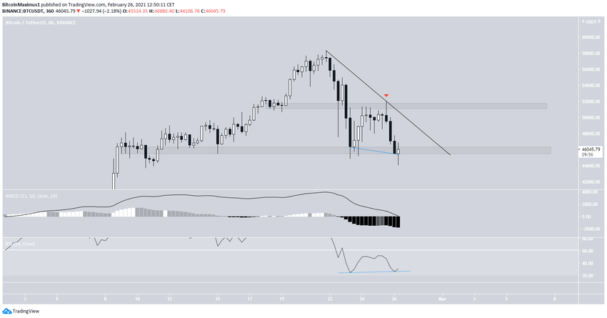 BTC ha estado bajando desde el 21 de febrero, cuando cotizaba en un máximo histórico de 58.351 dólares. A lo largo de la caída, ha estado siguiendo potencialmente una línea de resistencia descendente que aún no ha sido validada suficientes veces.