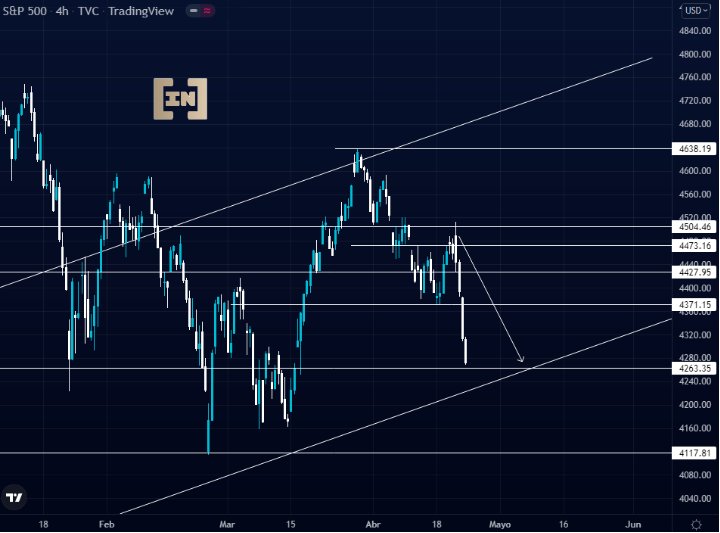Continuidad bajista para el S&P500 en medio de una semana de gran volatilidad, en nuestro video de análisis técnico semanal se tenía previsto un escenario 50/50, destacando la continuidad bajista con proyección a los 4263 puntos.