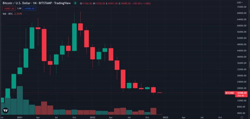 Su repunte a más de 17,000 dólares en las primeras operaciones del 1 de diciembre de 2022 fue su nivel más alto desde que el exchange de las Bahamas colapsó bajo el peso de los retiros masivos a principios de noviembre de 2022.