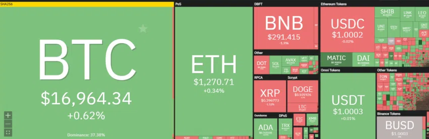 Poco después de la publicación del índice de precios PCE central, Bitcoin subió 1,5% en las 24 horas anteriores para cruzar la marca psicológica de 17,000 dólares antes de caer a 16,988 dólares.