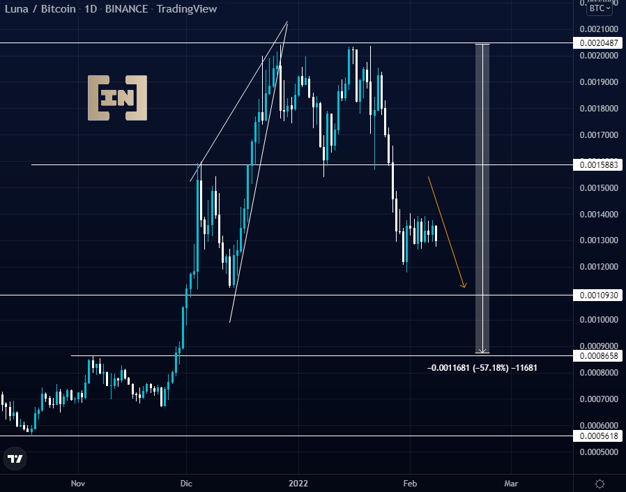 El ultimo patrón de velas lateral que se aprecia en la cotización de LUNA es muy común encontrarlas a modo de descanso en una continuidad de tendencia la cual de momento es bajista.