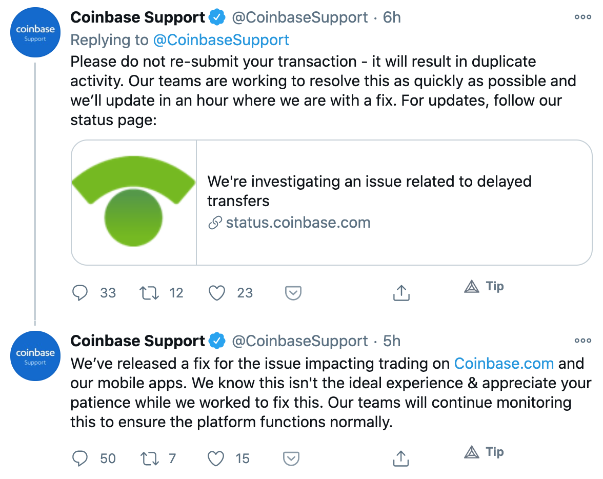A la 17:14, el exchange alertó a los usuarios a través de Twitter de que un error en la plataforma podría impedir que las transacciones se lleven a cabo. Debido al error, de esa manera varias órdenes de compra no serían ejecutadas – al menos no en el momento correcto.
