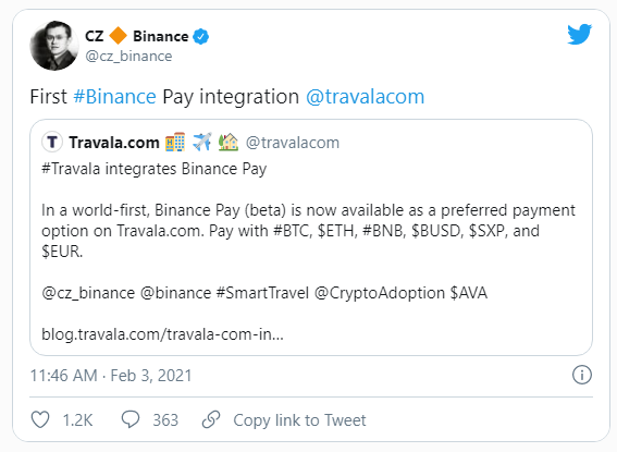 Además, el mayor exchange por volumen, Binance, presentó a principios de este año un sistema de pagos que competirá con PayPal. El lanzamiento se sumó al “Universo Binance”, que ya se está expandiendo rápidamente. El universo presenta una tarjeta, productos financieros y una cartera de opciones de trading.