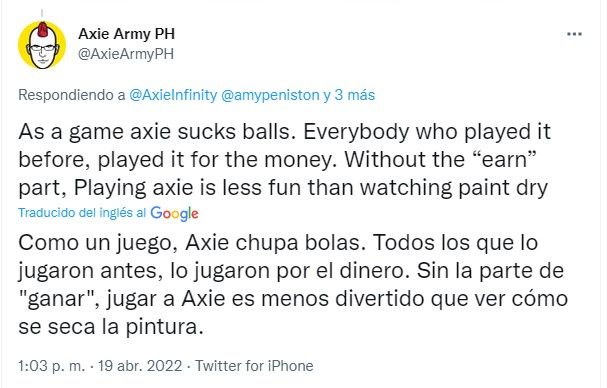 Según el usuario Justin Dela Cruz aún si Axie presenta un modelo totalmente nuevo, no generaría el mismo interés que llegó a generar a mediados del 2021.