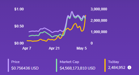El resultado: un éxito total. Llegar primero al mercado para suplir la necesidad de inmediato justificó ese sacrificio de descentralización, hasta el punto de superar al mismísimo Ethereum en número de transacciones diarias en un 600%, según reportó BeInCrypto.