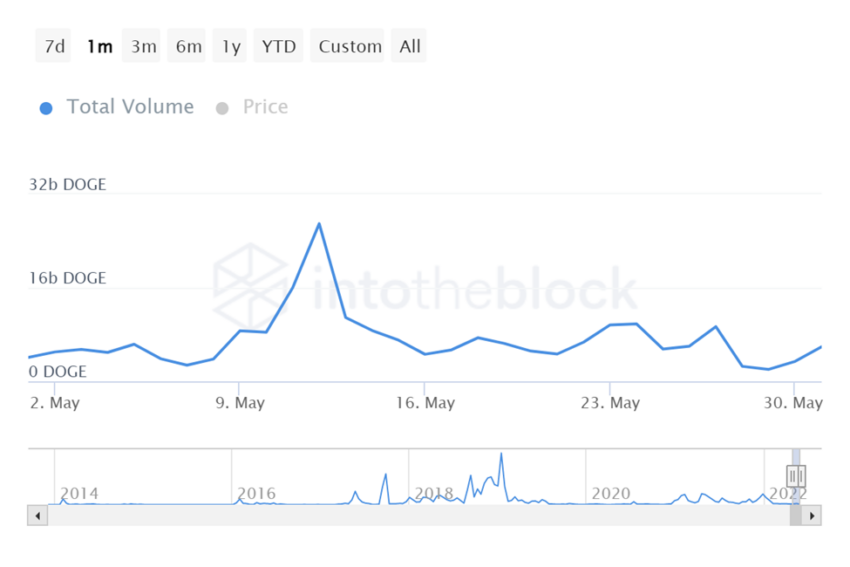 En general, esto equivale a una caída del 30% entre los precios de apertura y cierre de DOGE en mayo.