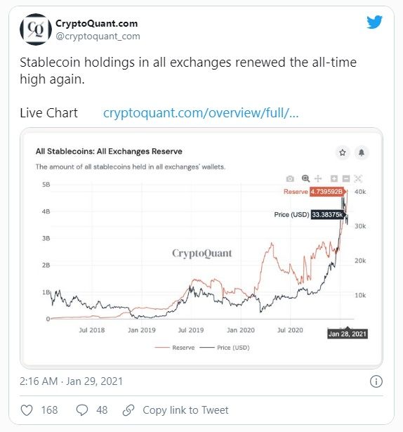 Los datos de CryptoQuant refuerzan esta narrativa y muestran que las tenencias de stablecoins en los exchanges están aumentando simultáneamente. A menudo se infiere que un aumento en la entrada de monedas estables como el USDC provocará un repunte en el precio de Bitcoin y otras criptomonedas importantes.
