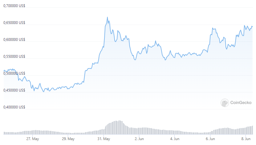 Al momento de la publicación, ADA cotiza en 0.64 dólares, lo que representa un aumento de aproximadamente el 10% en las últimas 25 horas y del 23% en los últimos 14 días, según los datos de CoinGecko.