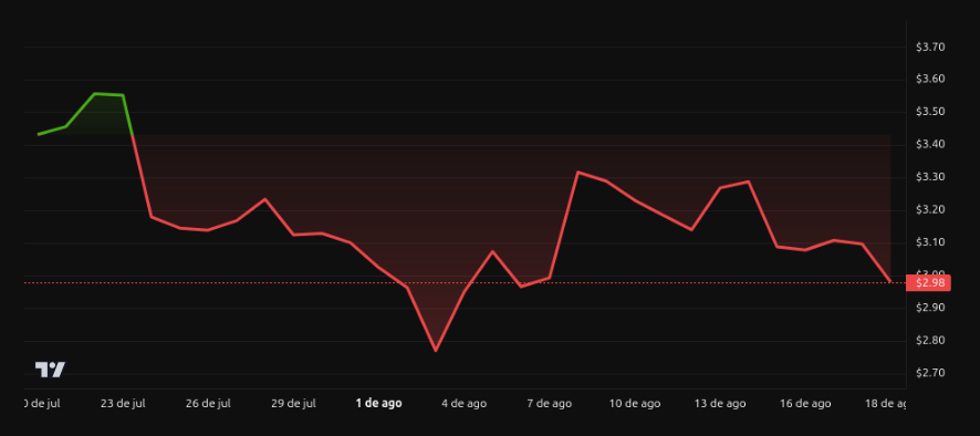 En 2018, la criptomoneda pasó de un máximo cercano a 3.30 dólares a desplomarse más del 95%. Algo similar ocurrió en 2021, cuando tras rozar los 2 dólares, experimentó un retroceso prolongado.