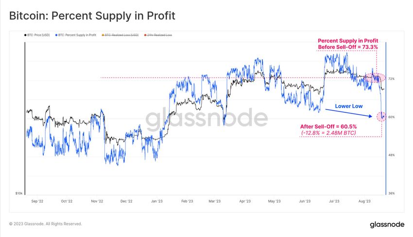 Sin embargo, una gran parte de ese suministro se perdió durante la caída del 10% de BTC. Señaló que el 12.8% del suministro, o 2,48 millones de BTC, cayó en una pérdida no realizada que establece un mínimo más bajo en la métrica.