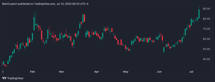 Las acciones de Coinbase han subido un 150% este año, mientras que las del ETF subió un 51%. Además, COIN ha superado el índice Nasdaq 100, que subió un 38%, y el crecimiento del 16% del S&P500.