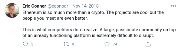 Aunque hay desarrolladores que se dedican a determinadas iniciativas de la comunidad, los críticos vienen de fuera de la comunidad. ¿Por qué debería suceder todo esto solo para extender la vida útil de Ethereum, cuando existen plataformas de contratos inteligentes ya escaladas?