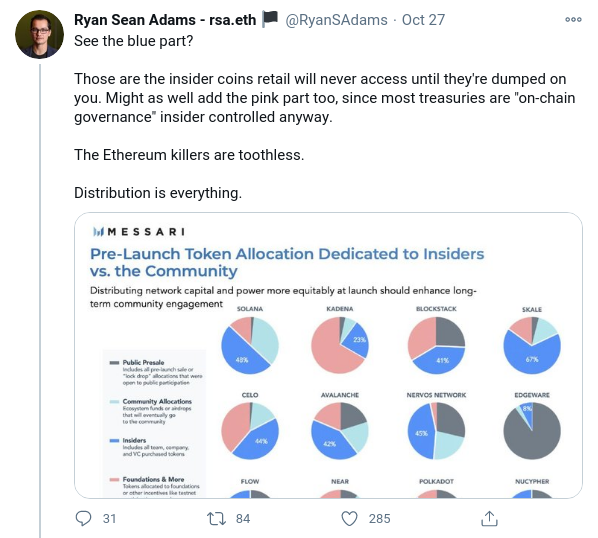 Al mismo tiempo, nadie puede afirmar que otras plataformas, ahora o en el futuro, no puedan cumplir la misma función. Este año se invirtieron cientos de millones de dólares en PolkaDot (DOT), cuyos fundadores trabajaron en Ethereum, y Cardano (ADA), que aún no ha lanzado una red principal, pero promete muchas cosas que también promete ETH-2.