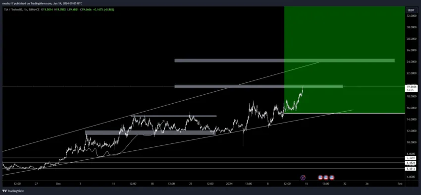 El precio de TIA de Celestia se ha catapultado a casi la marca de los 20 dólares en las dos primeras semanas de 2024, lo que marca un hito importante para el token recién lanzado.