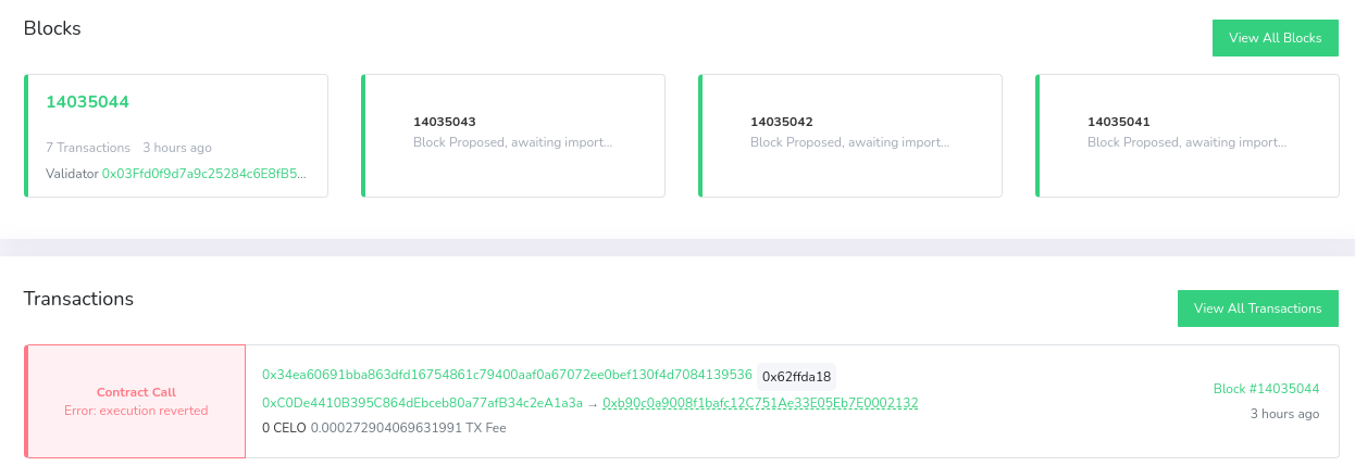 Algunas horas después de la notificación oficial, la producción de bloques se reanudó durante breves minutos. Sin embargo, la blockchain se detuvo nuevamente a la altura del bloque 14,035,044, tal como se puede observar en el explorador de bloques de Celo.