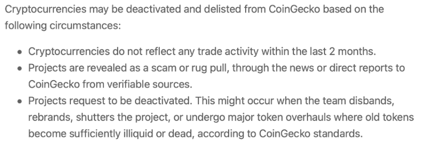 El mercado alcista de 2021 que comenzó en noviembre de 2020 vio muchos proyectos (alrededor de 8,000) enumerar sus respectivas criptomonedas en CoinGecko. Según el informe, casi el 40% de ellos han sido desactivados y eliminados del sitio desde entonces.