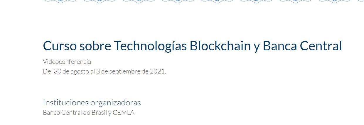El Centro de Estudios Monetarios Latinoamericanos de la Asociación de Bancos Centrales de América Latina y el Caribe anuncio el ciclo de videoconferencias “Curso sobre Tecnologías Blockchain y Banca Central”, a realizarse del 30 de agosto al 3 de septiembre.
