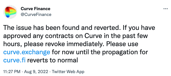 Curve Finance fue víctima de un exploit front-end causado por un problema de DNS. El equipo detrás del protocolo consiguieron resolver el exploit, llegando a congelar 112 ETH del botín total gracias a los esfuerzos de FixedFloat.