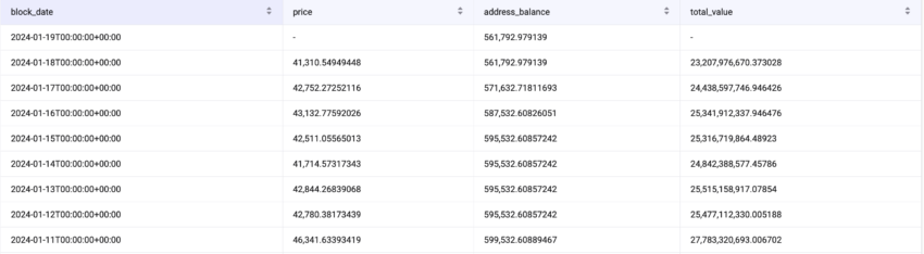A pesar del argumento de Sonneshein, el ETF GBTC está perdiendo atractivo en el mercado debido a sus elevadas comisiones. La siguiente captura de pantalla muestra que las reservas de BTC de Grayscale han disminuido en más de 37,740 desde que los ETF de Bitcoin al contado comenzaron a negociarse.