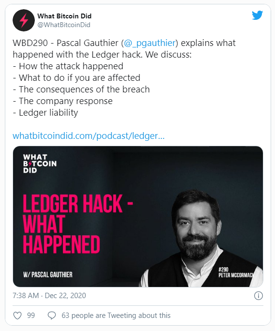 Después de explicar cómo ocurrió el hackeo, Gauthier aseguró a los oyentes del podcast que Ledger está haciendo todo lo posible para ser lo más transparente posible. Dice que la información relevante está disponible a través del sitio web de Ledger.