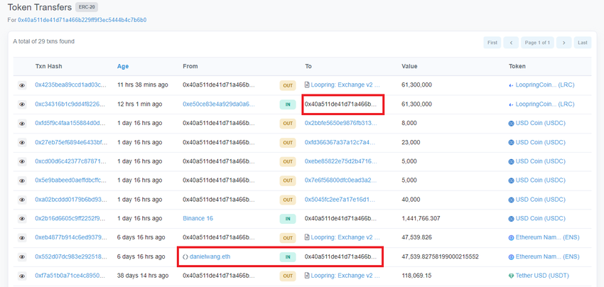 SponsoredEl 16 de noviembre, se produjo un depósito de 61,3 millones de LRC, por un valor de 164,8 millones de dólares, en Loopring Exchange. Los activos también se movieron de la Capa 1 a la Capa 2.