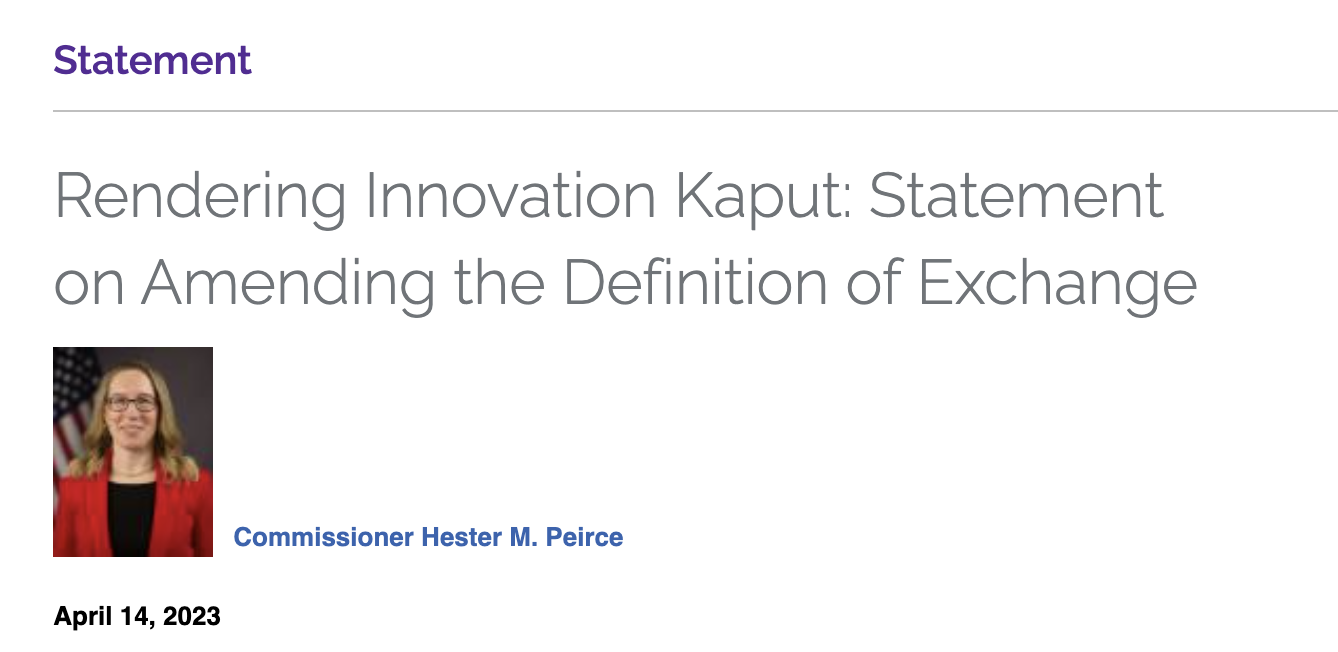 Peirce despidió a la SEC por ‘resolver problemas que no existen’ mientras aplicaba una interpretación amplia del significado legislativo de “intercambio”.