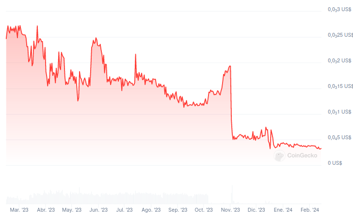 El token SFM ha experimentado una caída dramática desde el inicio de la crisis y acusaciones de fraude contra SafeMoon, desplomándose 99% desde su máximo histórico registrado en enero de 2022.