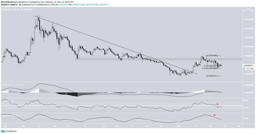 El gráfico de LINK/BTC muestra una ruptura de una línea de resistencia descendente que había estado previamente en su lugar desde agosto de 2020.