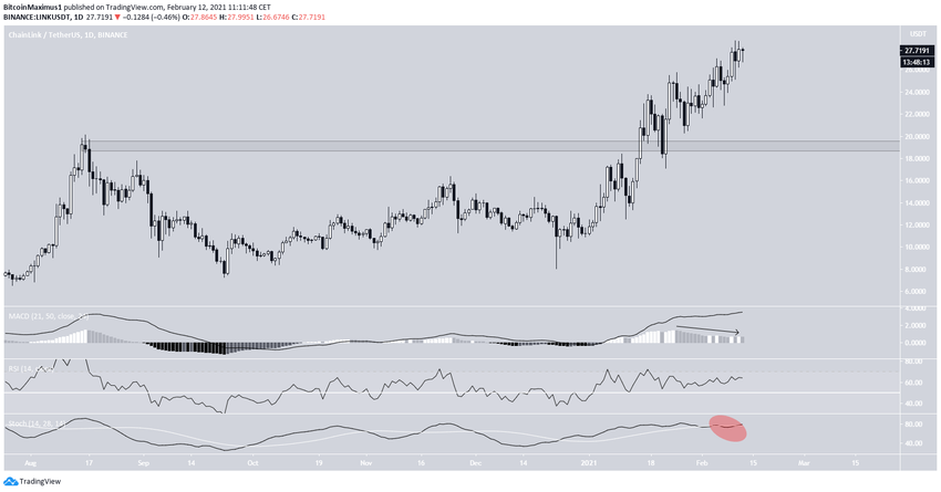 Chainlink (LINK) alcanzó un nuevo precio máximo histórico de 28,64 dólares el 10 de febrero, pero no se ha movido mucho en ninguna dirección desde entonces.