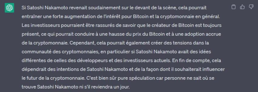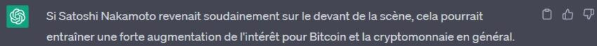 Así, según ChatGPT, un regreso al frente del creador de BTC podría provocar un aumento en el precio de Bitcoin.