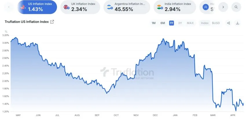 Mejor aún, los recortes de las tasas de interés podrían ser potencialmente más recurrentes con la prolongada caída de la inflación estadounidense. Aunque los datos del IPC estadounidense fueron positivos en abril (datos de marzo), son aún mejores en tiempo real, según Truflation.