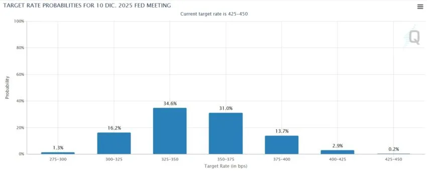 Con los tipos clave en el 3.50% para finales de año (previsiones del CME Group), Bitcoin podría superar de nuevo la barrera de los 100,000 dólares y retomar un impulso alcista. Incluso se espera que el objetivo de precio superior sea de 115,000 dólares.