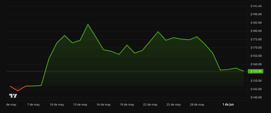 SponsoredSolana se negocia actualmente en 153,78 dólares tras una caída del 13.4% en la última semana. En un escenario bajista, podría descender a 130 dólares debido a problemas de red o ventas masivas. El escenario moderado prevé estabilización cerca de 150 dólares.