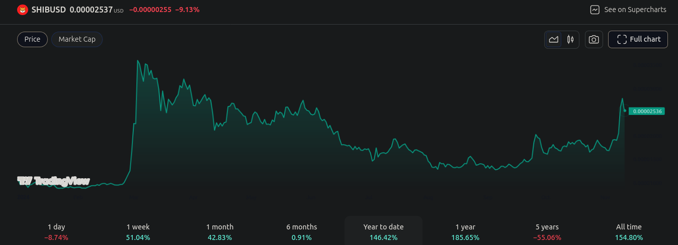 Con un precio actual de 0.00002549 dólares según TradingView, los inversores y analistas están ansiosos por saber qué depara el futuro para SHIB a medida que se acerca el final de 2024.