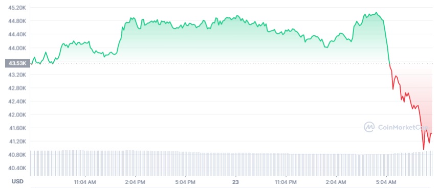 Al momento de la publicación, Bitcoin cotiza a 41,518.54 dólares, lo que representa una caída de casi el 5% en las últimas 24 horas, según los datos de CoinMarketCap.