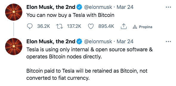 En Marzo de este mismo año 2021, Tesla dio un paso más allá cuando a través del canal twitter de Elon Musk se anunció que los clientes podrían comprar coches de la marca con Bitcoin. Esto fue un paso muy importante para las criptomonedas porque por primera vez una gran compañía aceptaba hacer transacciones de sus productos con una criptomoneda.