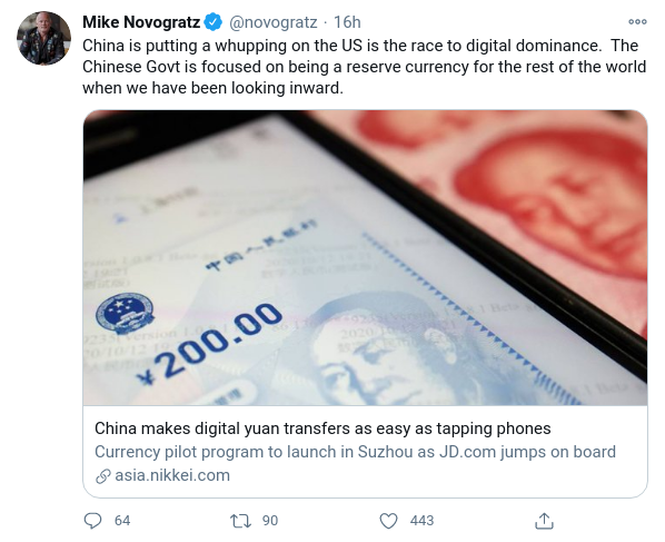 Mike Novogratz, el CEO de Galaxy Digital, también comentó sobre el acontecimiento y dijo que China está «azotando a EE.UU.».