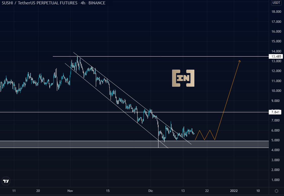 SushiSwap estabiliza su cotización entre los 5 dólares y 6 dólares.