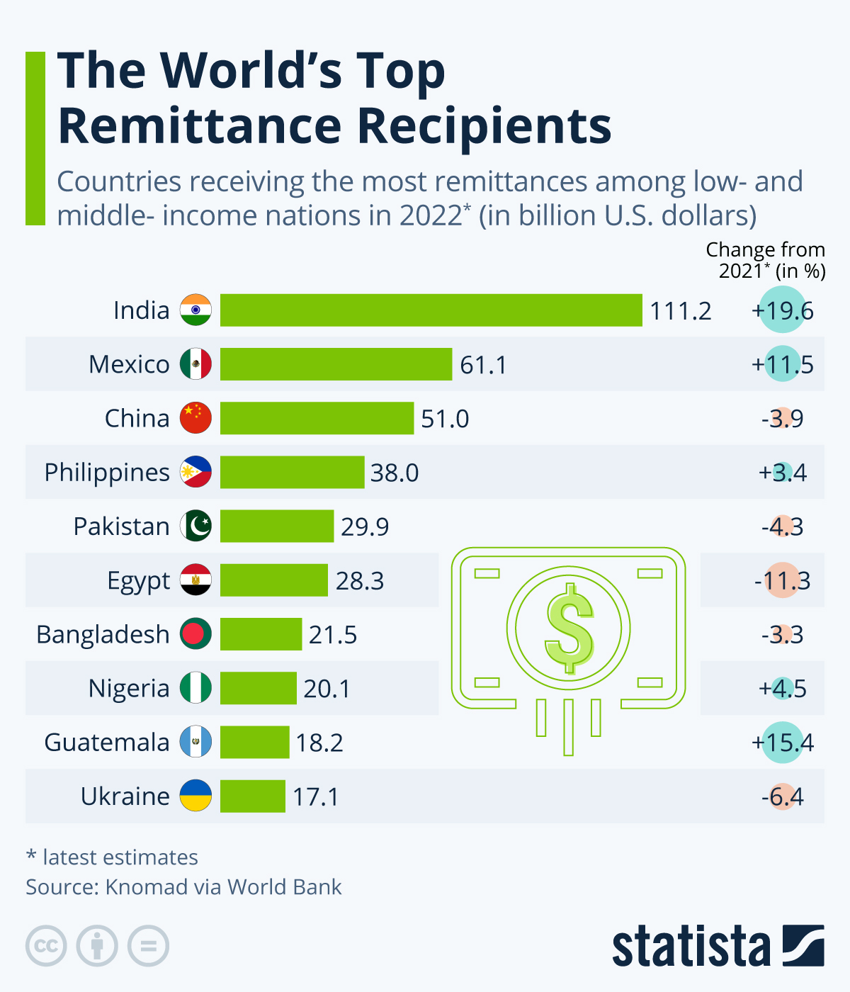 Según datos de Statista de 2022, Filipinas es el cuarto mayor receptor de remesas. El año pasado recibió 38,000 millones de dólares en remesas, un aumento del 3,4% respecto a 2021.