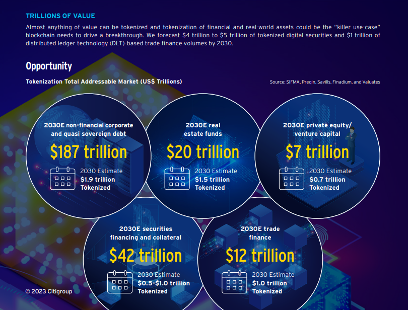 Citibank predice en su informe de marzo que la tokenización basada en blockchain alcanzará una base de usuarios de miles de millones y un valor de billones de dólares.