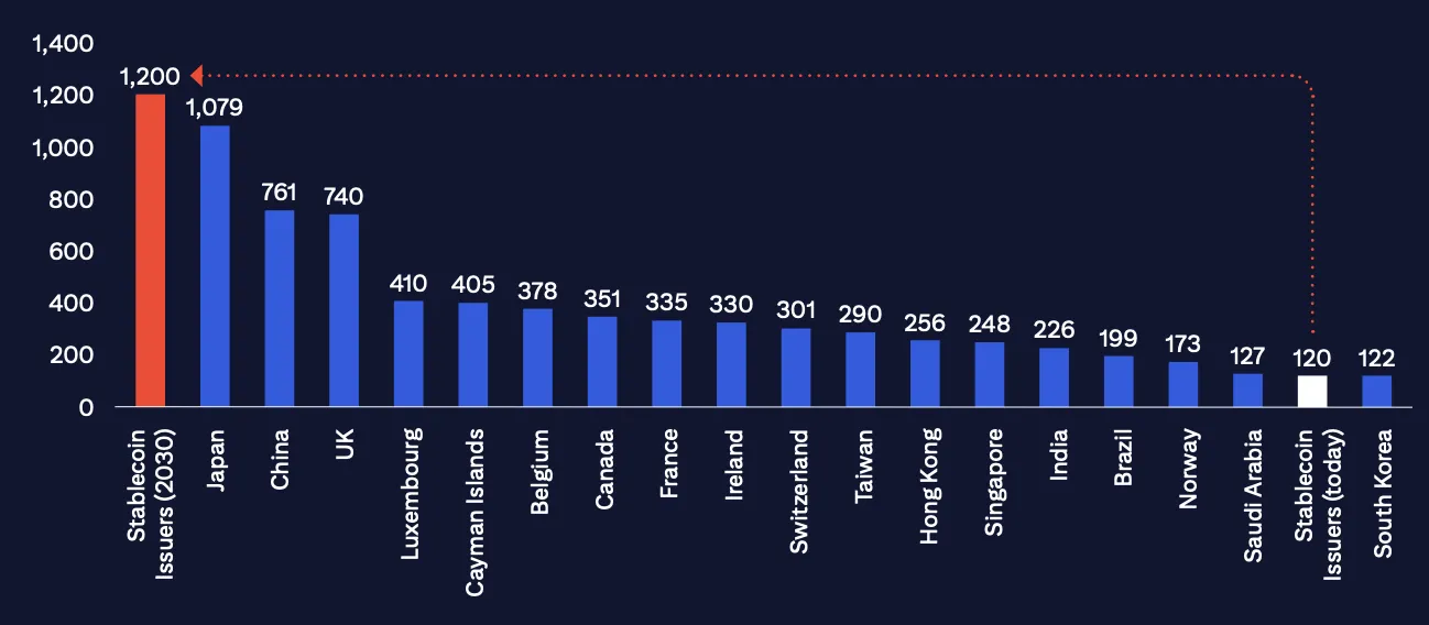 Un estudio reciente del Citi Institute, la organización de investigación de Citigroup, afirma que el mercado global de stablecoins podría alcanzar hasta 3,7 billones de dólares para 2030. Esta fue su estimación más alcista, pero el caso base fue de 1,5 billones de dólares.