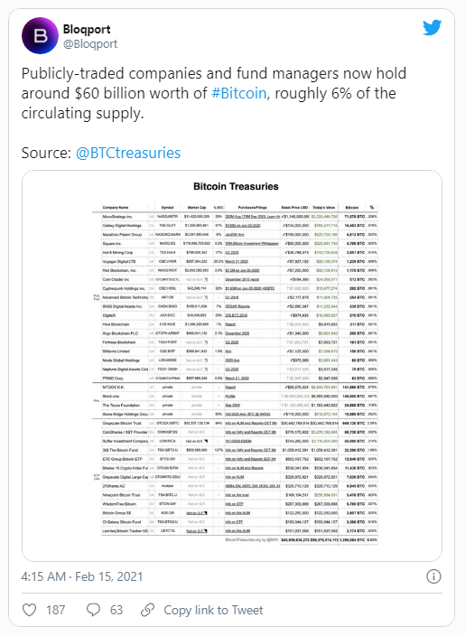 El valor de Bitcoin se disparó considerablemente el 8 de febrero después de que Tesla invirtiera 1.5 mil millones de dólares en la criptomoneda líder en el mundo.