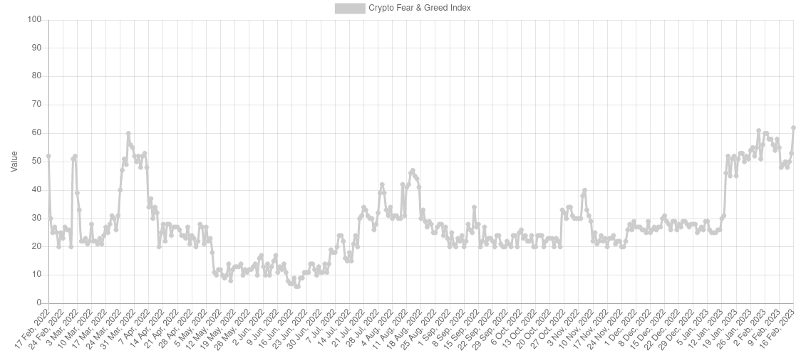 El Índice de Miedo y Codicia no superaba la marca de los 60 puntos desde el pasado mes de marzo de 2022.