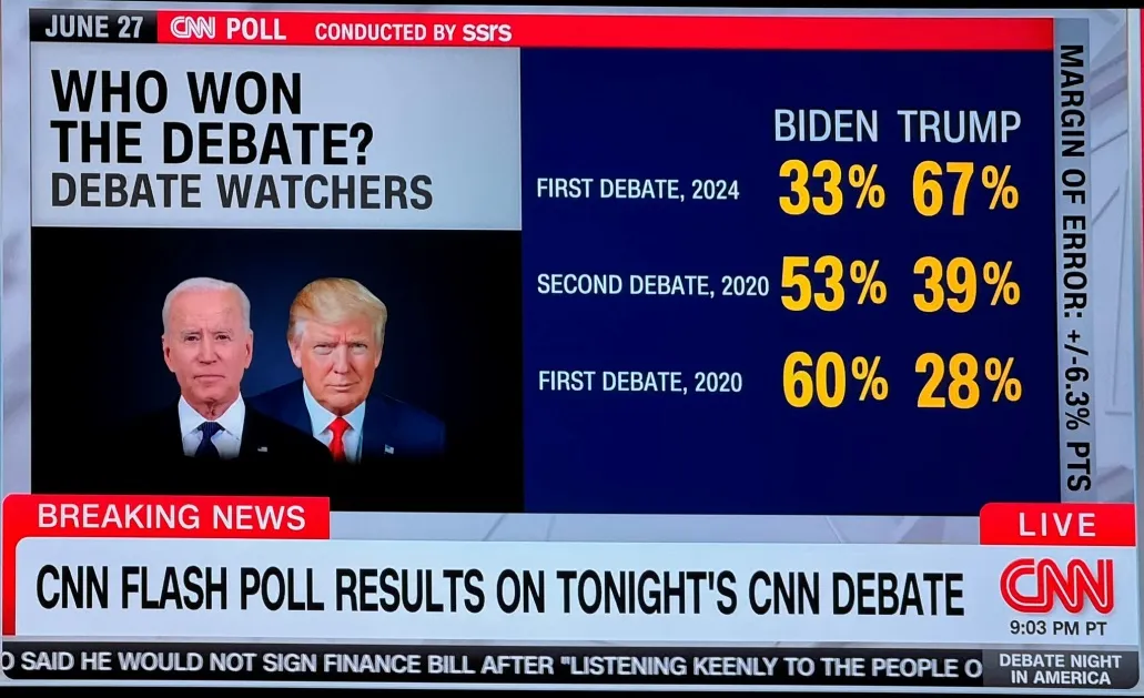 Notablemente, este fue el primer debate entre los dos aspirantes presidenciales. Otro está programado para septiembre antes de las elecciones de noviembre. El sentimiento general es que Trump ganó la primera ronda, con 67% frente al 33% de Biden, según encuestas rápidas de CNN.