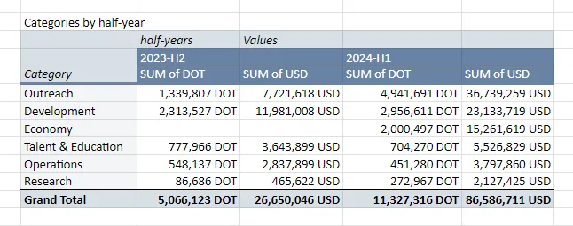 El informe de ingresos compartido en el foro de gobernanza de Polkadot el 28 de junio reveló que el proyecto asignó 37 millones de dólares a marketing en la primera mitad del año. Este gasto forma parte de los 87 millones de dólares gastados durante este período.