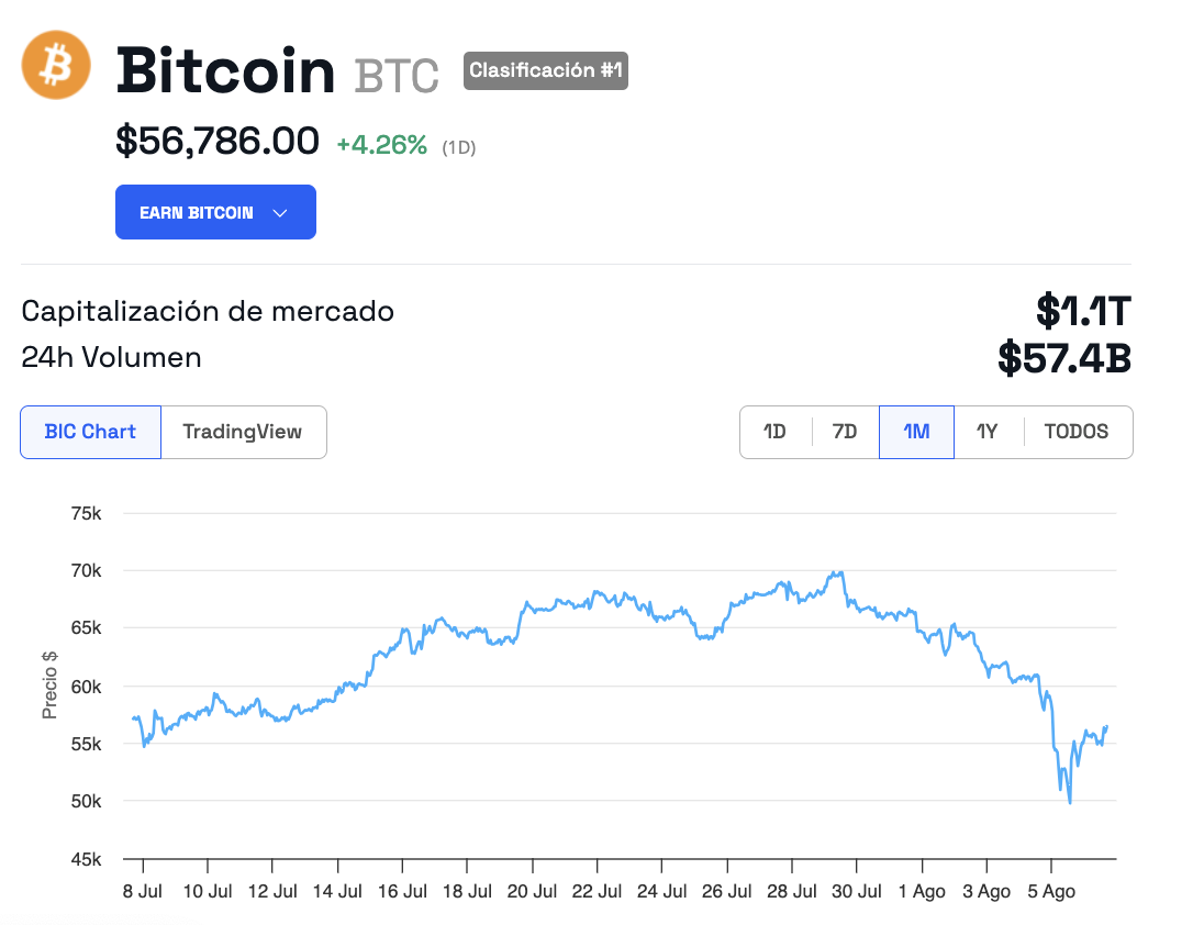 BeInCrypto reportó que el precio de Bitcoin (BTC) superó los 56,000 dólares a las primeras horas del 06 de agosto, tras un pico de aversión al riesgo en el mercado global que llevó a caídas significativas en el mercado cripto más amplio.