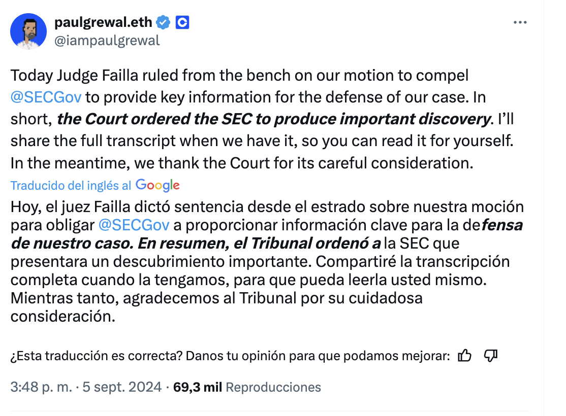 Meses atrás, Coinbase pidió al tribunal de apelaciones que obligue al regulador financiero a establecer una normativa clara para la industria emergente. Coinbase alegó que la SEC impone importantes cambios de política a través de medidas punitivas, sobrepasando sus límites.